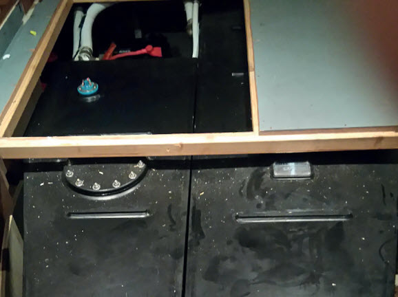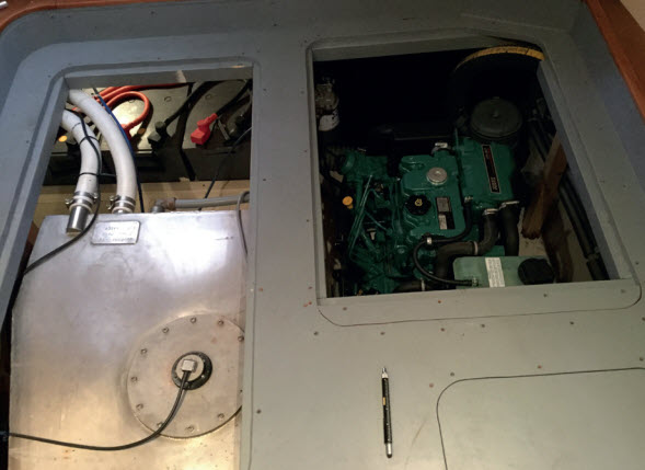 1. The Elling E3 master cabin berth was sat above 2 water tanks of 600 and 830 litres. They were removed to ft a Volvo D1-30 with sail drive as a back up and canal auxiliary.