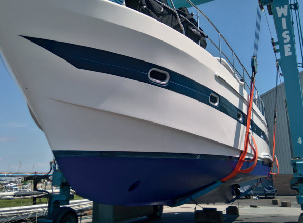 5. Antifouled and anodes replaced she is launched as soon as possible to check ballasting and waterline for listing.